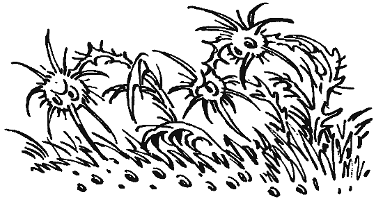 — Невезение — невезение — сплошное невезение, — твердил мрачно Громозека, шагая вдоль раскопа, в котором трудились роботы, а археологи за ними присматривали. Говоря «невезение», Громозека имел в виду не только пауков и деревья с желтыми цветами. Тайна планеты Бродяга, оставленной жителями, все еще не была разгадана. Казалось бы, Громозека с его опытом должен был в первый же день ответить на простой вопрос: кто и зачем создал планету, кто здесь жил и куда делся. Нельзя сказать, что археологи ничего не нашли. Остатки городов и поселений встречались во многих местах. Но это были какие-то ненастоящие поселения. В земле, покрывавшей изнутри планету пятиметровым слоем, обнаруживались каменные плиты, куски дерева, обломки железных орудий, глиняные черепки. Но ни одной книги, ни одного произведения искусства, даже ни одной игрушки. Профессору Селезневу и Алисе повезло больше, чем археологам. Животный мир планеты был удивительным, ни на что не похожим. Здешние четвероногие, шестиногие, многоногие обитатели были объединены одним общим качеством — злостью. Во всей Вселенной действуют одинаковые биологические законы. Каждое живое существо старается выжить, прокормить своих детей. И если для этого лисице приходится охотиться на зайцев, а прокурулям глотать весчиков, удивляться не приходится. Зато волк никогда не нападет на слона или шестиметрового крокодила, потому что это самоубийство, а воробей не станет охотиться на носорога, потому что это ему ни к чему. Здесь же все было иначе. Все на всех нападали. Нужно, не нужно, все равно нападали. От этого местные животные таились друг от друга, нападали исподтишка, неожиданно и злобно. К тому же все они, даже самые травоядные из травоядных, были вооружены страшными челюстями, шипами, ядовитыми железами, иглами, чуть ли не ракетами. — В этом нет логики, — говорил профессор Селезнев Алисе, сидя на берегу речки, что текла рядом с холмом, где шли раскопки. — Для меня такое поведение животных — нарушение законов природы. Загадка не менее странная, чем все другие загадки Бродяги. — Я с тобой согласна, — сказала Алиса. Всегда ходить в скафандре, хотя вокруг самый нормальный воздух, обидно и глупо. Но что поделаешь. Вот над головой вьется комарик. А еще неизвестно, что это за комарик. И только Алиса так успела подумать, как комарик выпустил жало длиной сантиметра два и спикировал на Алису. Жало согнулось, ударившись о шлем, но Алиса, хоть и была готова к нападению, вздрогнула. — Дурак, — сказала она комару. Комар еще раз бросился на Алису, но промахнулся и упал на землю. Речка была мелкой, прозрачной и неширокой. Видны были камешки на ее дне, а в самой глубине просвечивала тусклым блеском металлическая основа планеты. Алисе хотелось искупаться, но об этом и мечтать не приходилось, потому что даже мальки в реке готовы были тут же вцепиться в любого купальщика. Алиса стояла на берегу, смотрела, как играют в воде мальки, и думала: «Вот странно, я вижу металлическое дно реки. И если бы у меня была самая сильная в мире нога, я могла бы топнуть, пробить дно и оказалась бы в черном бесконечном космосе, а вода из реки фонтаном вылетела бы наружу и круглыми каплями разлетелась бы в пространстве». Селезнев снимал на пленку рыб, брал образцы воды, чтобы потом определить микробов, живущих в ней. Алиса его охраняла. Ведь неизвестно, в