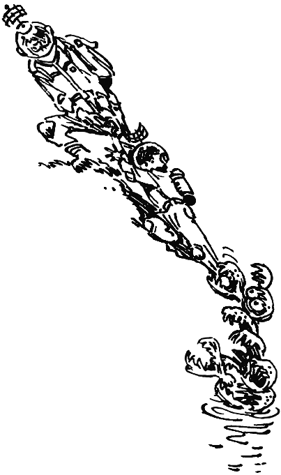 — Правильно, — сказал отец. — Но в полицейском участке была ванна. Архимед залез в нее и доказал полицейским, что он был прав. — Полицейские разделись и по очереди залезали в ванну. — Пока не расплескали всю воду. — И последний полицейский сказал, что Архимед не прав, потому что его телу нечего вытеснять… — А вот подумай о Ньютоне, — сказал отец. — После того, как яблоко упало ему на голову… Но продолжить рассуждения о судьбе великих ученых Селезневы не смогли, потому что в этот момент они как раз переходили вброд речку, а из песка на дне вылезли чьи-то железные челюсти, схватили Алису за ногу и не пускали, пока профессор Селезнев не вытащил Алису на берег вместе с вцепившейся в ногу мертвой хваткой совершенно непонятной тварью, состоявшей только из челюстей. Пока отец отцеплял тварь от ботинка Алисы, она поглядела наверх, где недавно видела темное пятно. Пятно оказалось дырой в холме, может быть, даже входом в пещеру. Алиса хотела было сказать отцу, что надо будет проверить эту пещеру, в ней наверняка таится какой-нибудь хищник, но тут на обрыве снова возник Громозека, обиженный, оскорбленный, униженный поведением своих ближайших друзей, которые не желают спешить, чтобы увидеть собственными глазами, какое великолепное открытие он совершил.
